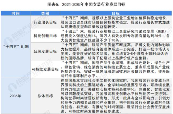 2021年10月,中国服装协会发布的《中国服装行业“十四五”发展指导意见和2035年远景目标》中也提出到2035年,在我国基本实现社会主义现代化国家时,我国服装行业要成为世界服装科技的主要驱动者、全球时尚的重要引领者、可持续发展的有力推进者。女装行业作为我国服装行业中最为重要的一环,将是我服装行业实现远大目标的关键所在。