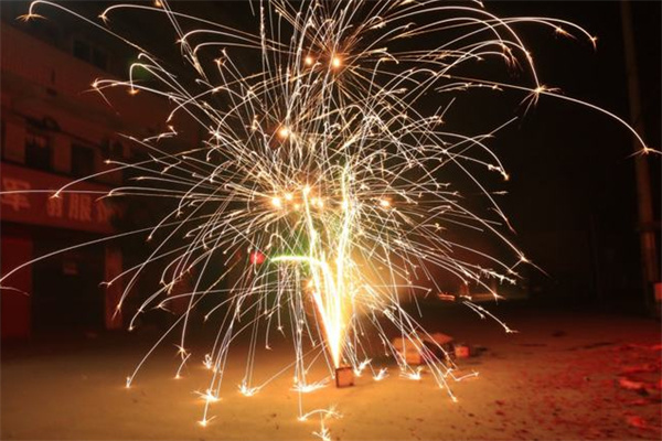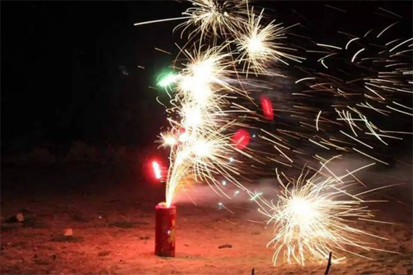 加特林烟花:点燃后握在手中,炮口对准天空,能感受到火焰呼啸着冲上天空释放五彩的光芒。