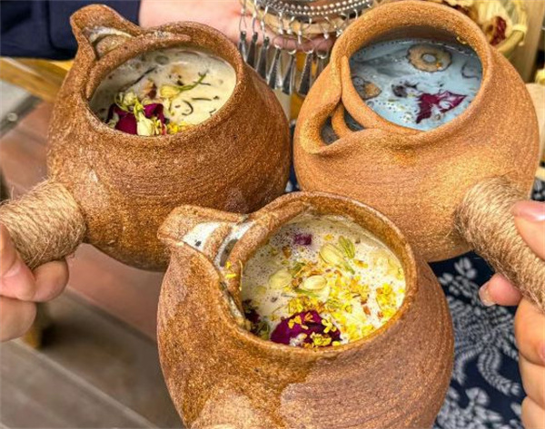 在丽江街头,放几个陶瓷罐子,倒上牛奶,撒上茶叶、玫瑰花和枸杞,美景配美食,满足了无数网友对云南的向往。