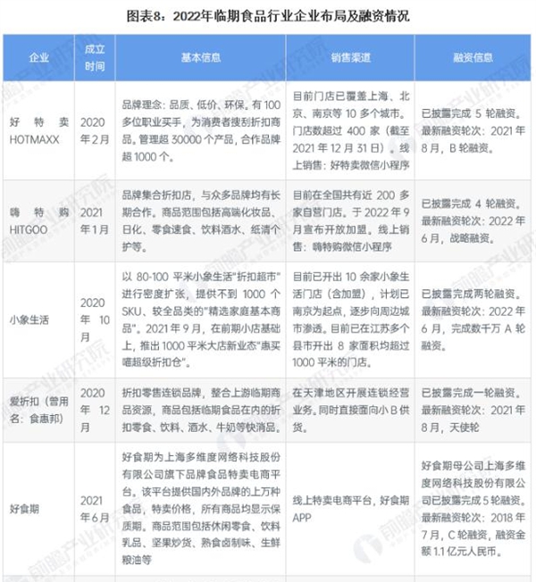 所有的消费品品牌每年都会有一定比例的临期、库存、滞销商品产生,这是中国式碎片化的零售市场、分层层的零售渠道、复杂的流通环节决定的,难以避免,清库存、去库存是品牌方持续的诉求。不少企业嗅到临期食品的商机,开始投资布局折扣超市。从临期食品代表企业的入场时间来看,主要集中在2020-2021年,其中门店数量最多,增长速度最快的是好特卖,2020年,好特卖门店为100余家,2021年门店数已超过400家。