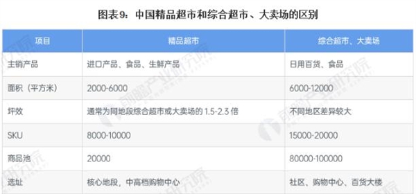 精品超市是一种大中型零售业商店超市,所售商品主要为高端日用消费品,如有机食品、品牌商品和高端进口产品等,主要的目标群体为中高收入阶层,通常分布于定位中高端或经营状况已较为成熟的高级百货大楼、购物中心,有望取代传统商超成为商场的核心零售业态。