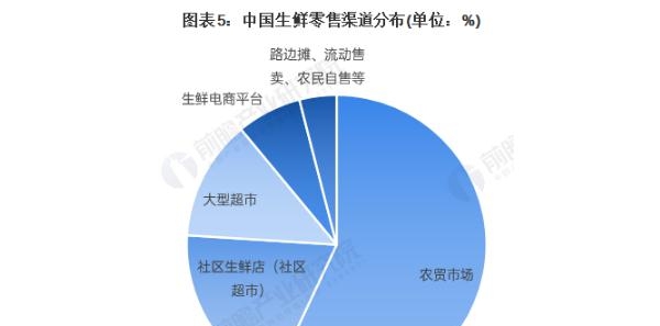 根据2022年1月全国城市农贸中心联合会发布的《2021年农贸市场发展情况调查报告》,从流通渠道占比来看,社区电商在内的线上平台与社区生鲜店正成为生鲜农产品流通渠道的有力补充。2020年,钱大妈、果多美等社区超市与社区生鲜店总交易额约占全国生鲜农产品零售总额的19%,大型超市约占13%,淘宝、京东等传统生鲜电商,多多买菜、美团优选、淘菜菜等社区电商,加上盒马、叮咚买菜、美团买菜等前置仓新零售渠道共占近7%,剩下约4%为流动摊贩、农民自售等销售渠道。