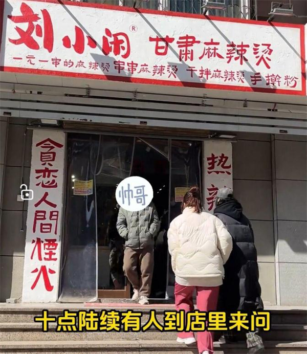 一位95年辞职创业的美女。因为美女嘴馋,去了一趟甘肃天水,回到山东济南便开了一家麻辣烫店。就是最近济南很火的那家刘小闲甘肃麻辣烫,大家可以看到大大的门头下面就写着店里卖品类:一元一串的麻辣烫、串串麻辣烫、干拌麻辣烫、手擀粉。店门两侧则新异的对联让人耳目一新:“贪恋人间烟火,热辣香烫”。这家店不仅大,但品类都很全。门头用白底红字很是醒目。